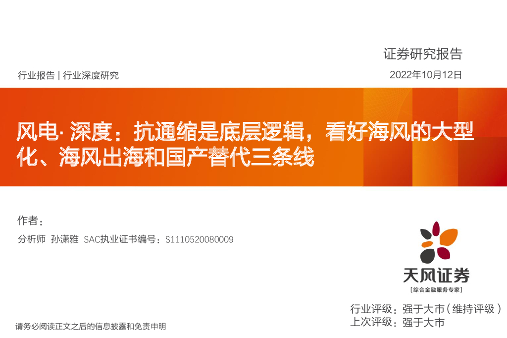 天风证券:风电·深度:抗通缩是底层逻辑,看好海风的大型化、海风出海和国产替代三条线.pdf