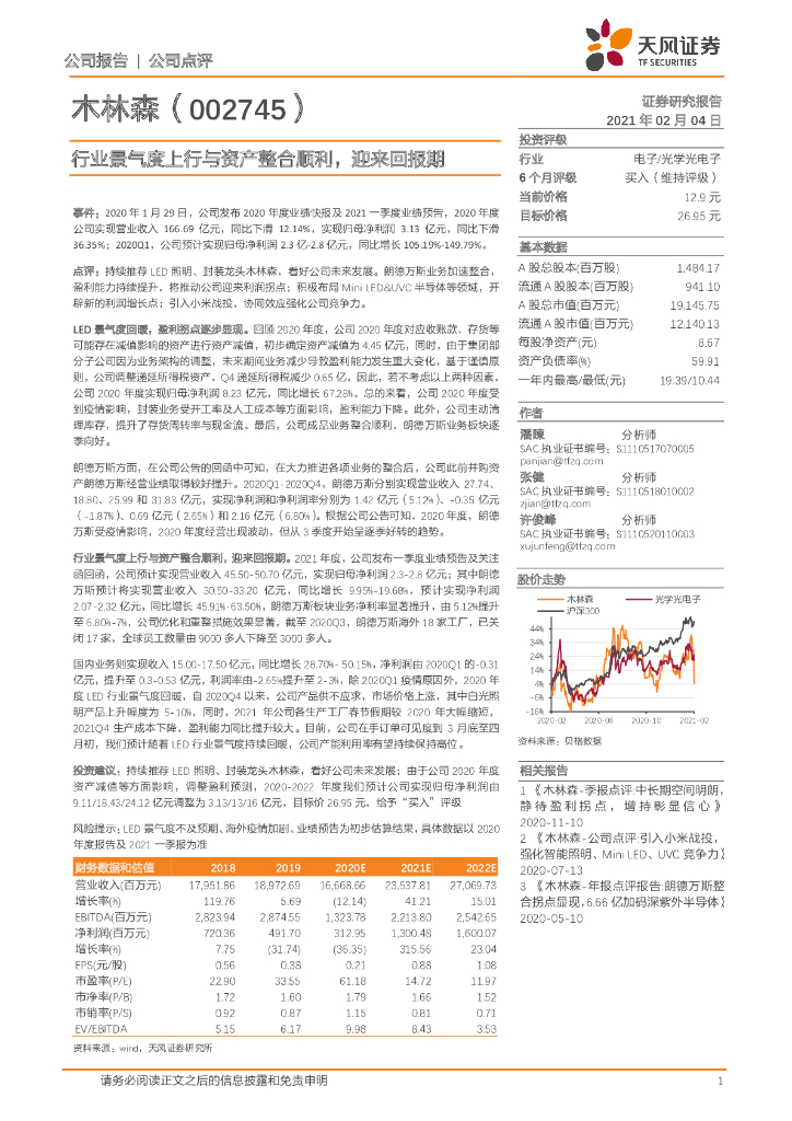 天风证券:木林森(002745)-行业景气度上行与资产整合顺利,迎来回报期.pdf