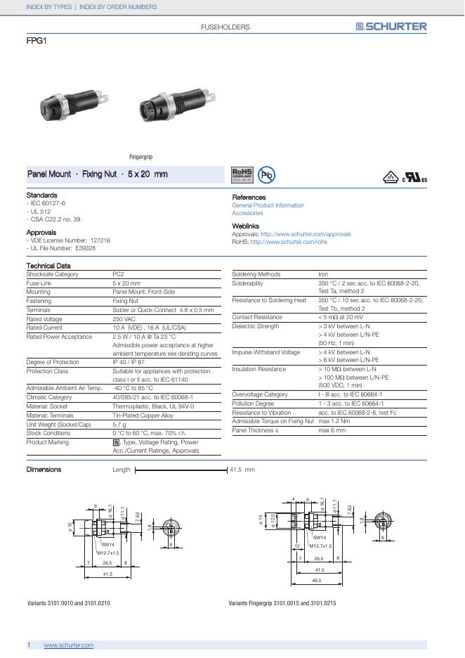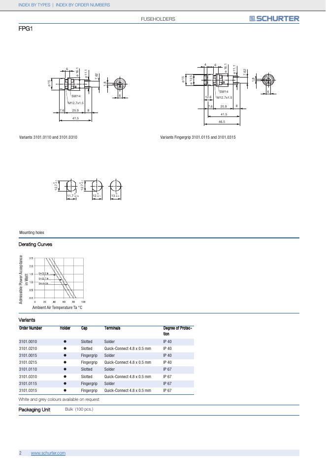 SCHURTER - 1 INDEX BY TYPES | INDEX BY ORDER NUMBERS FUSEHOLDERS F FP PG G1 1 数据手册.pdf