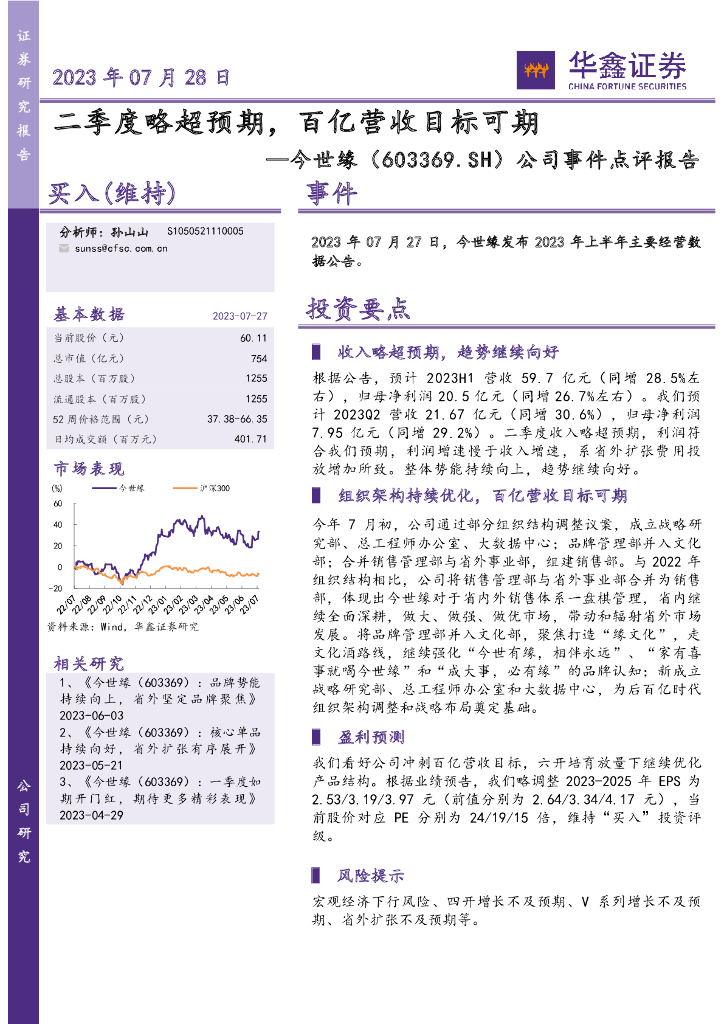 华鑫证券:今世缘(603369)-公司事件点评报告:二季度略超预期,百亿营收目标可期.pdf