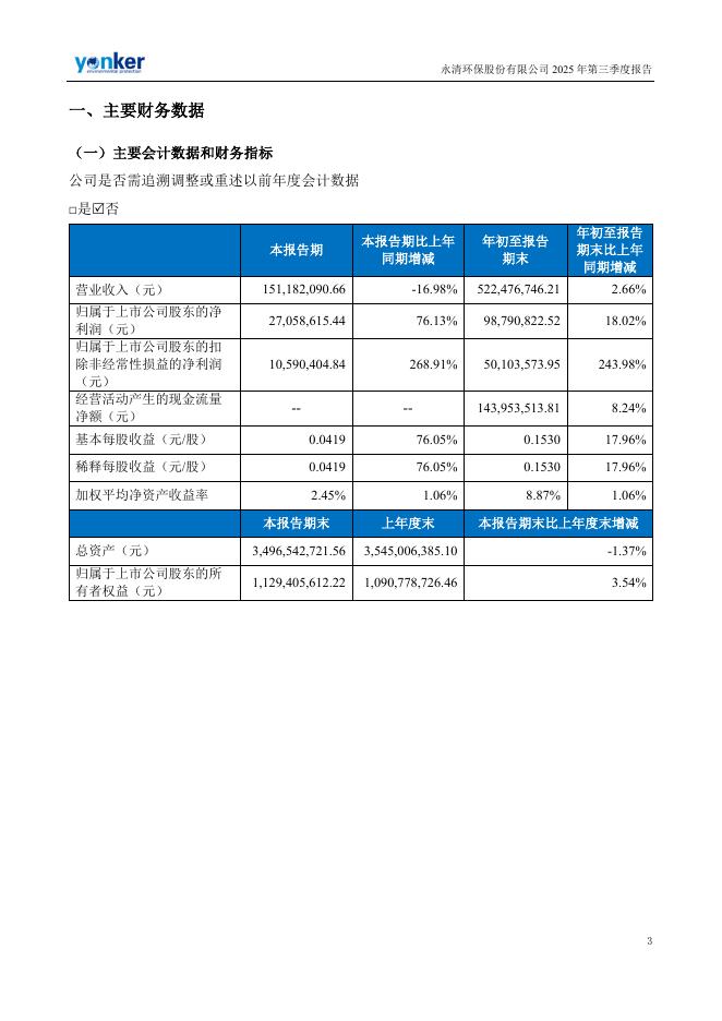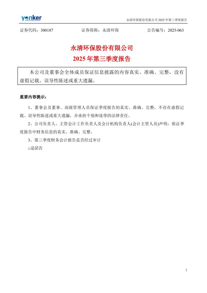 300187-永清环保:2025年三季度报告.pdf