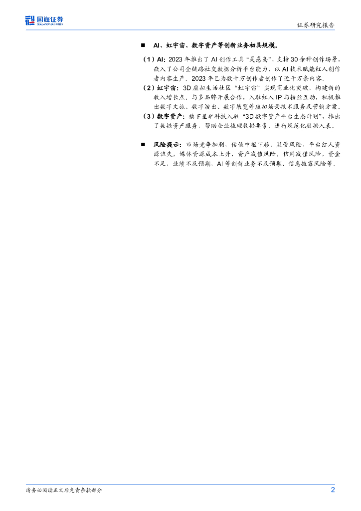 国海证券:天下秀(600556)-2023年年报点评:红人主业稳健,创新业务初具规模.pdf