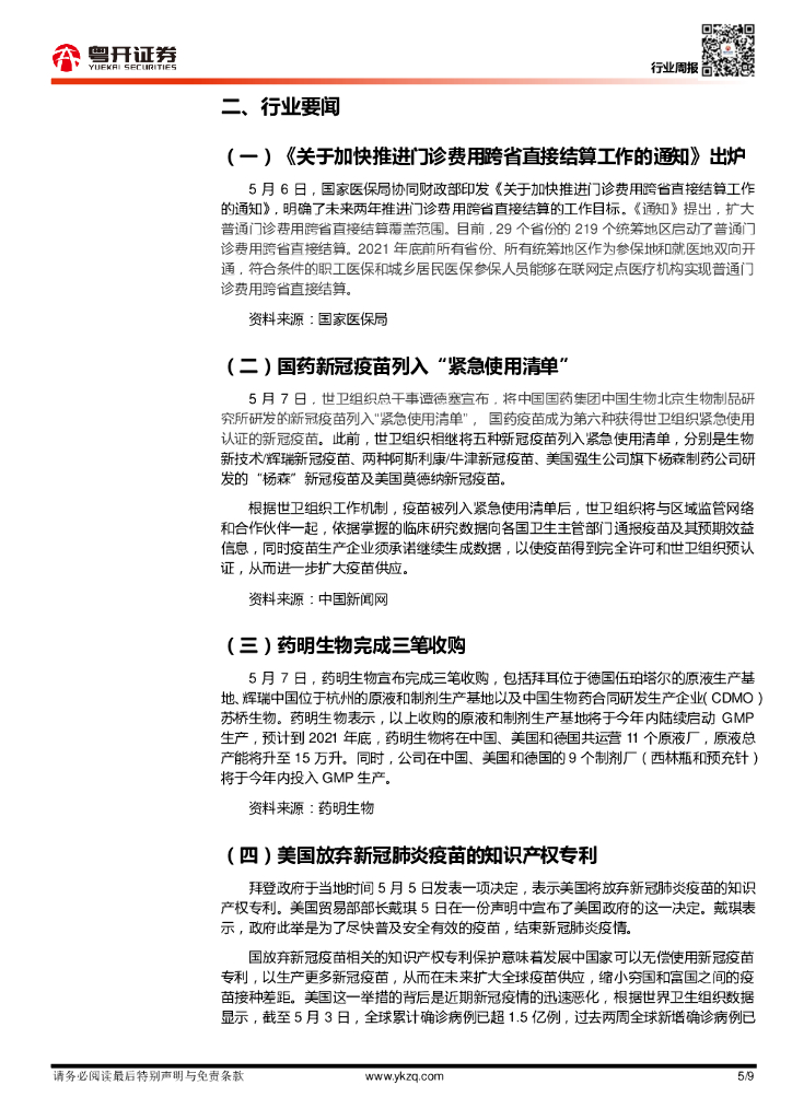 粤开证券:医药行业周报:国药新冠疫苗纳入WHO紧急使用清单,第五批国采药品信息收集工作即将开始.pdf