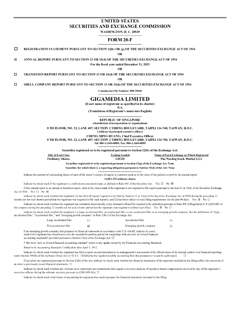 GigaMedia Limited(GIGM)2023财年年度报告(英文版).pdf
