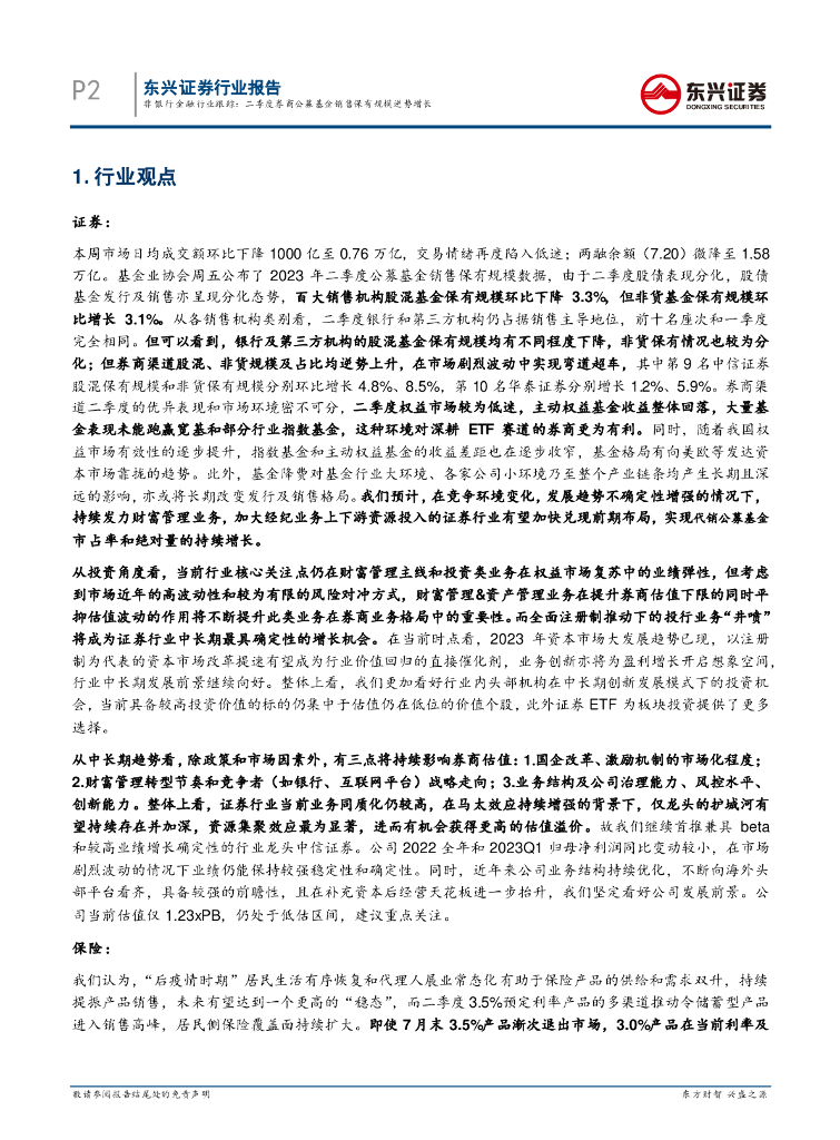 东兴证券:非银行金融行业跟踪:二季度券商公募基金销售保有规模逆势增长.pdf