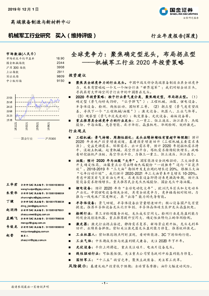 国金证券:机械军工行业2020年投资策略:全球竞争力:聚焦确定型龙头,布局拐点型.pdf