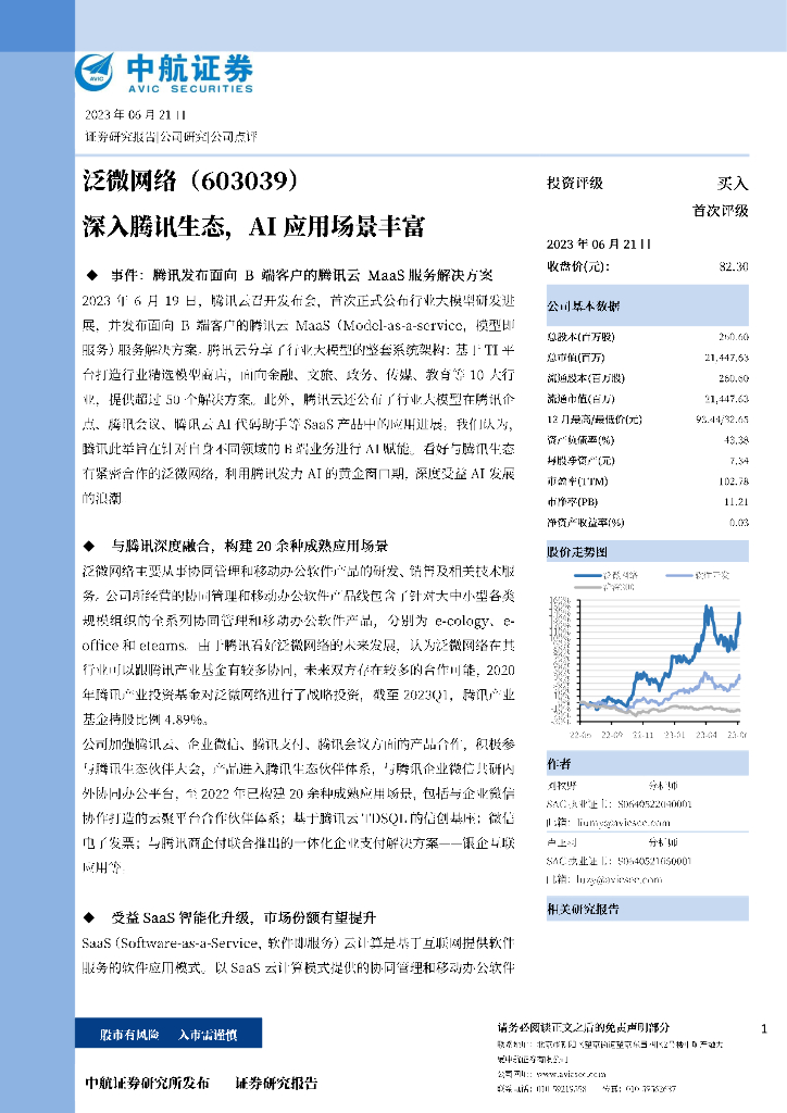 中航证券:泛微网络(603039)-深入腾讯生态,AI应用场景丰富.pdf
