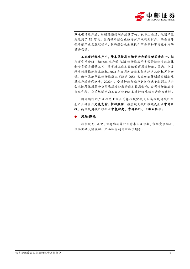 中邮证券:国防军工:碳纤维产业以高性能和低成本两条路径并行,国内供应能力迅速提升.pdf