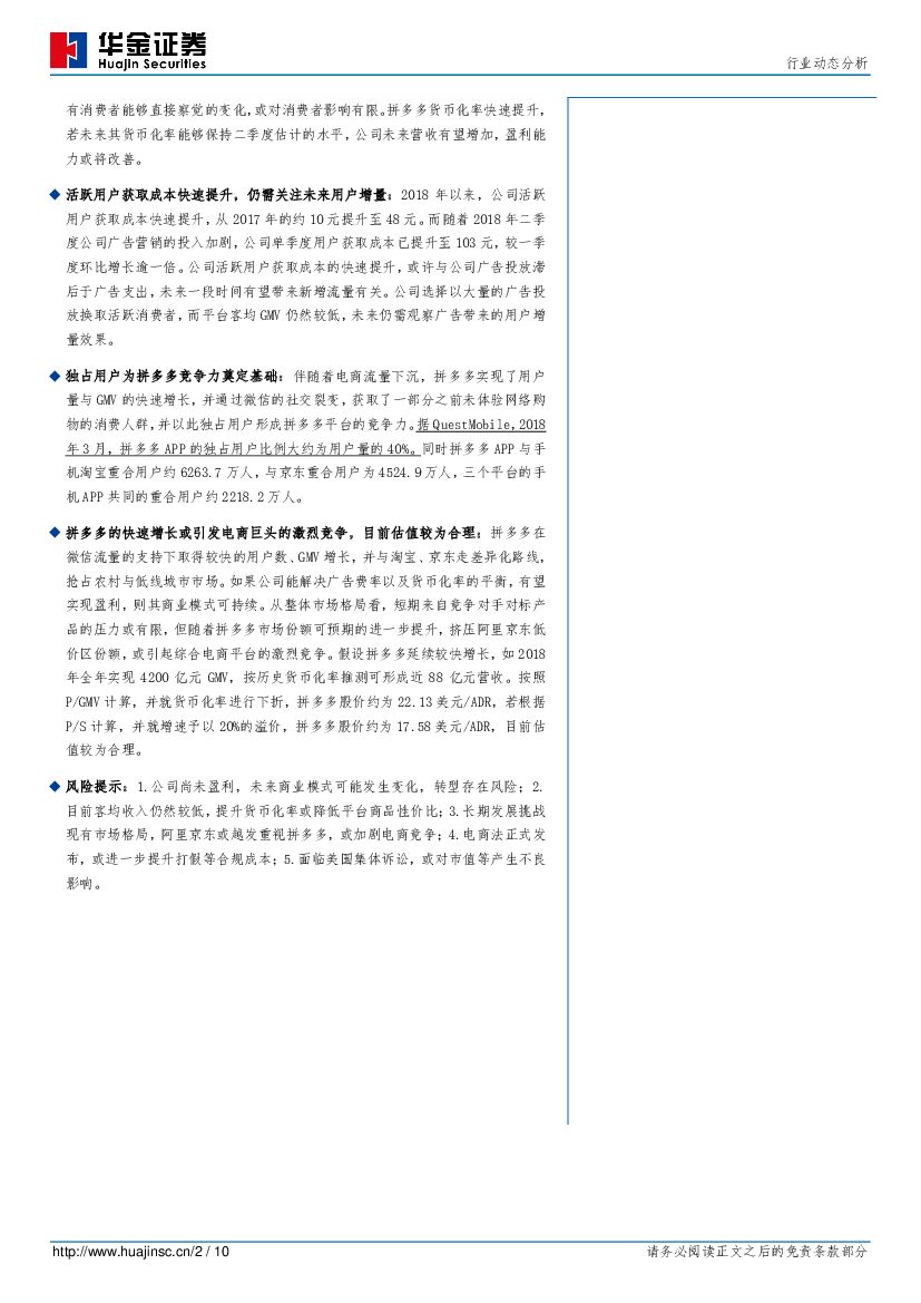 华金证券:商贸零售行业动态分析:拼多多半年报点评:GMV及营收持续向好,股权激励及广告支出拖累净利润.pdf