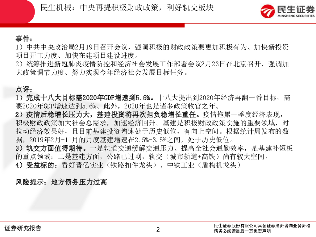民生证券:机械行业:中央再提积极财政政策,利好轨交板块.pdf