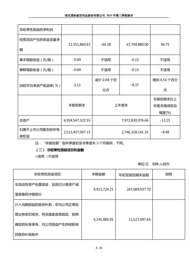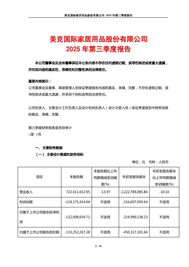 600337-美克家居:美克国际家居用品股份有限公司2025年第三季度报告.pdf