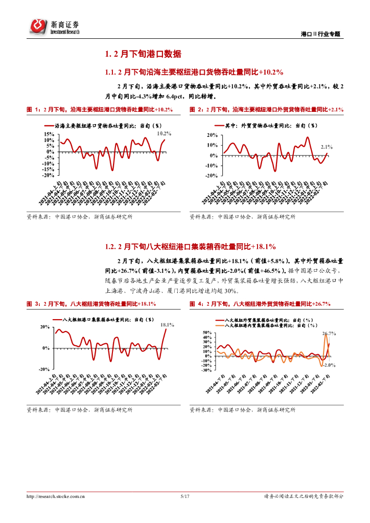 浙商证券:港口行业专题报告:2月下旬枢纽港外贸箱吞吐同比+26.7%,继续关注港口费率调整.pdf