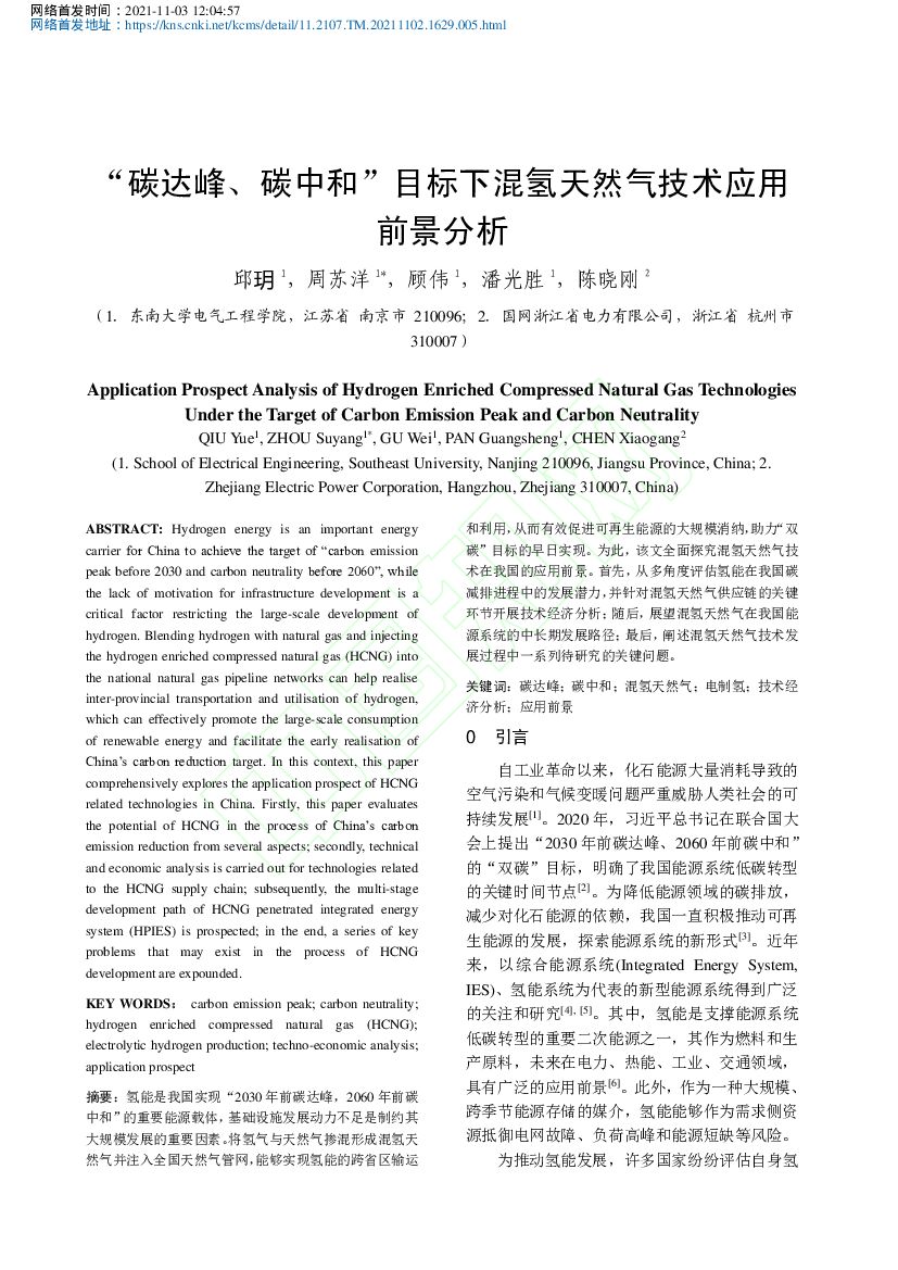 东南大学:“碳达峰、碳中和”目标下混氢天然气技术应用前景分析.pdf