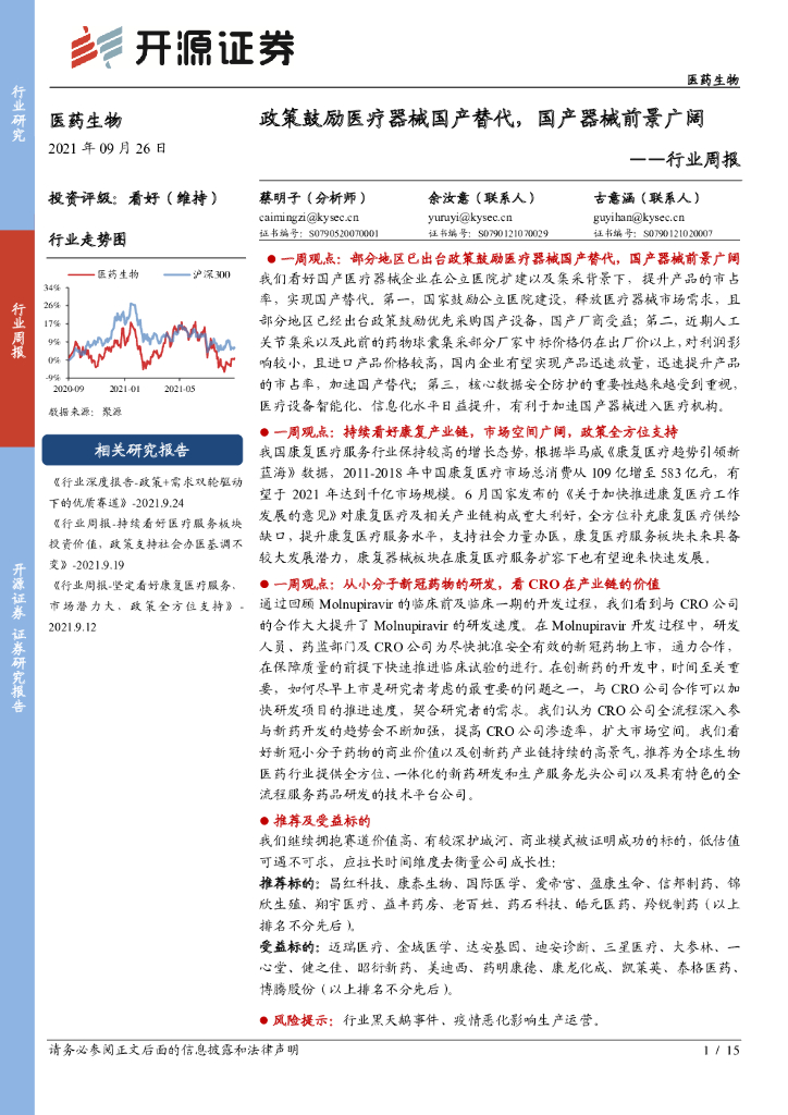 开源证券:医药生物行业周报:政策鼓励医疗器械国产替代,国产器械前景广阔.pdf