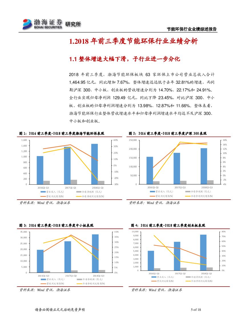 渤海证券:节能环保行业2018年三季报业绩综述:行业整体增速下滑,关注融资环境缓解.pdf
