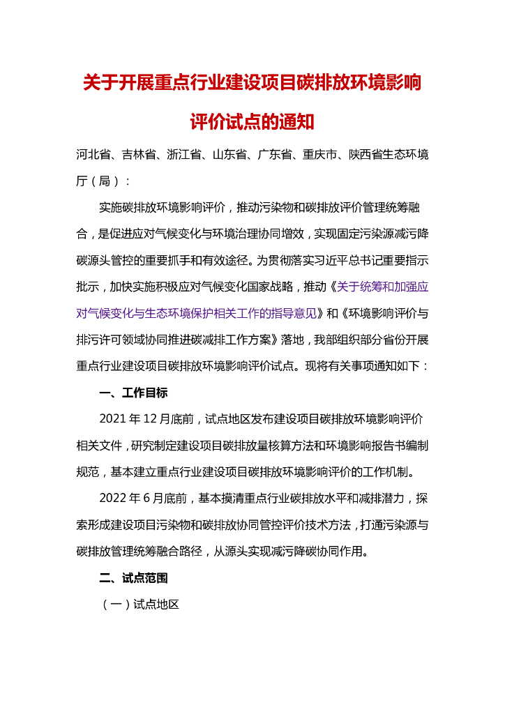 生态环境部:关于开展重点行业建设项目碳排放环境影响评价试点的通知.pdf