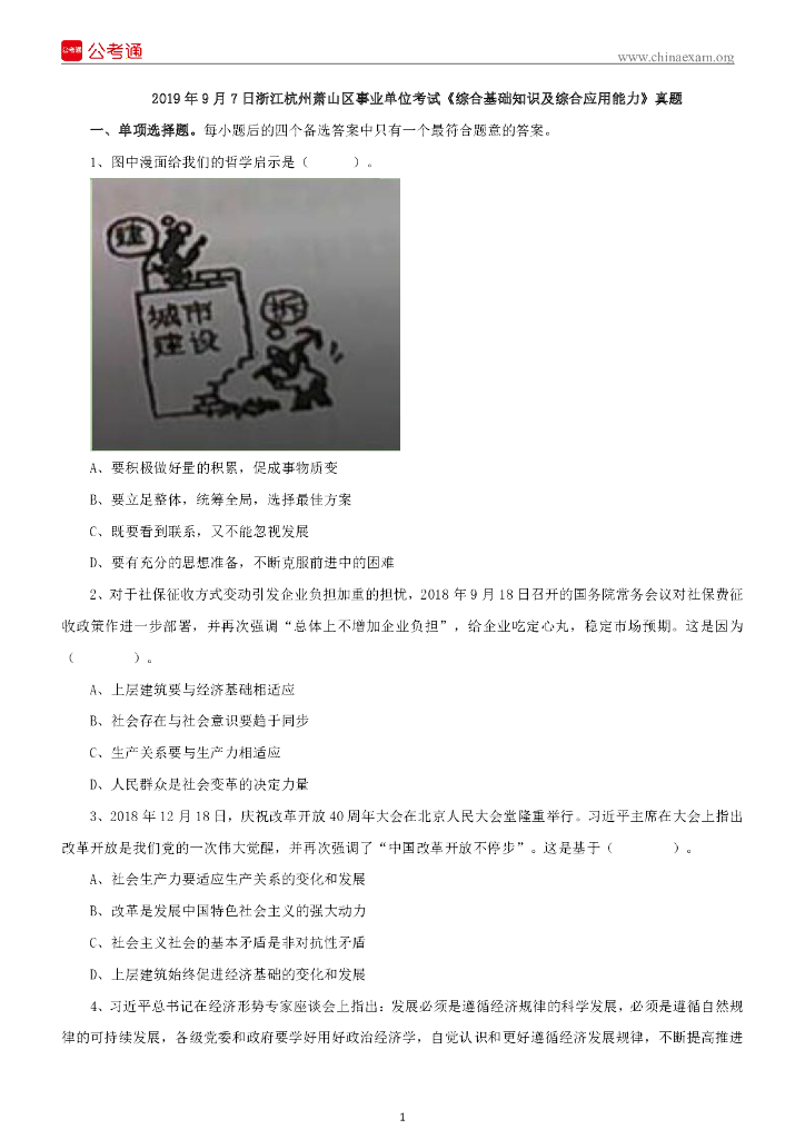 2019年9月7日浙江杭州萧山区事业单位考试《综合基础知识及综合应用能力》真题 ...pdf
