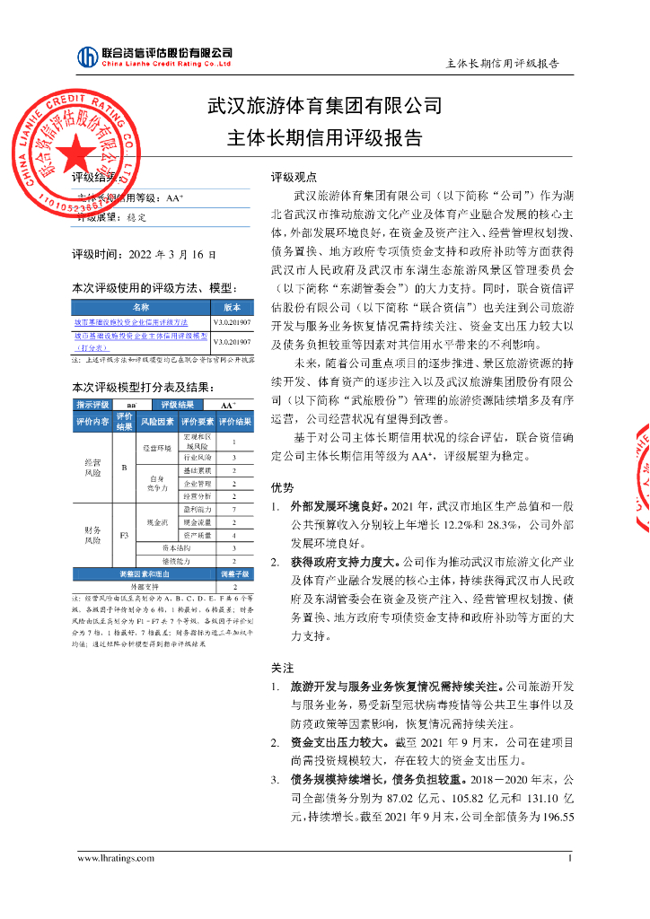 联合资信:武汉旅游体育集团有限公司主体信用评级报告及跟踪评级安排.pdf