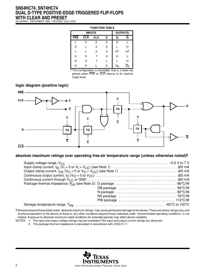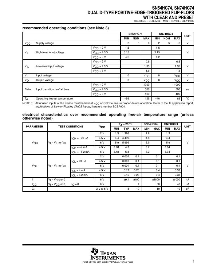 TEXAS INSTRUMENTS SN54HC74 SN74HC74 DUAL D-TYPE POSITIVE-EDGE-TRIGGERED FLIP-FLOPS WITH CLEAR AND PRESET 数据手册.pdf