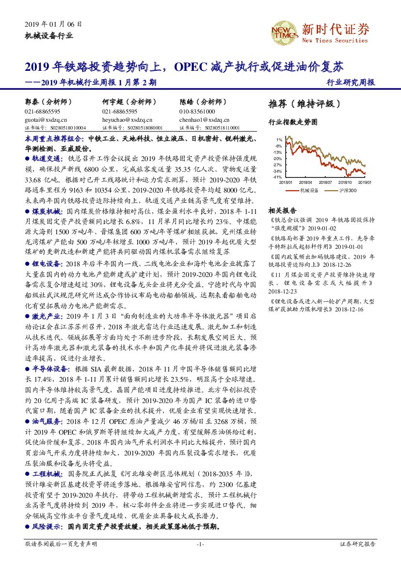 新时代证券:2019年机械行业周报1月第2期:2019年铁路投资趋势向上,OPEC减产执行或促进油价复苏.pdf