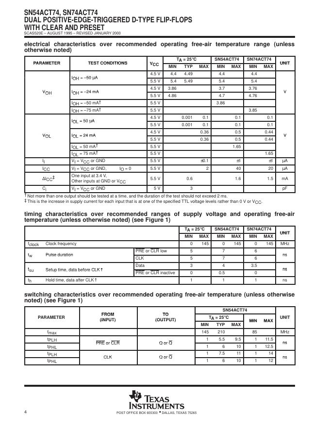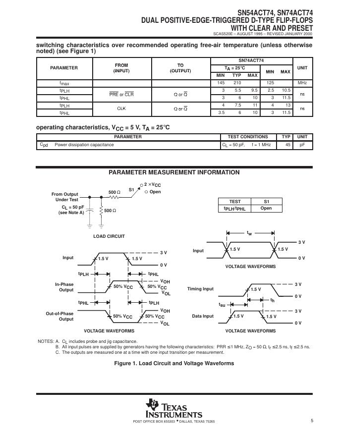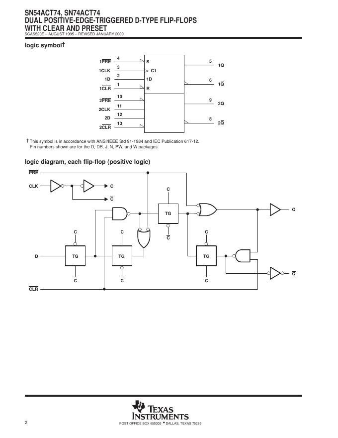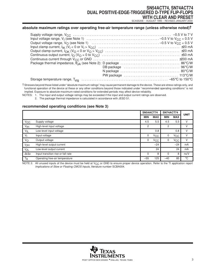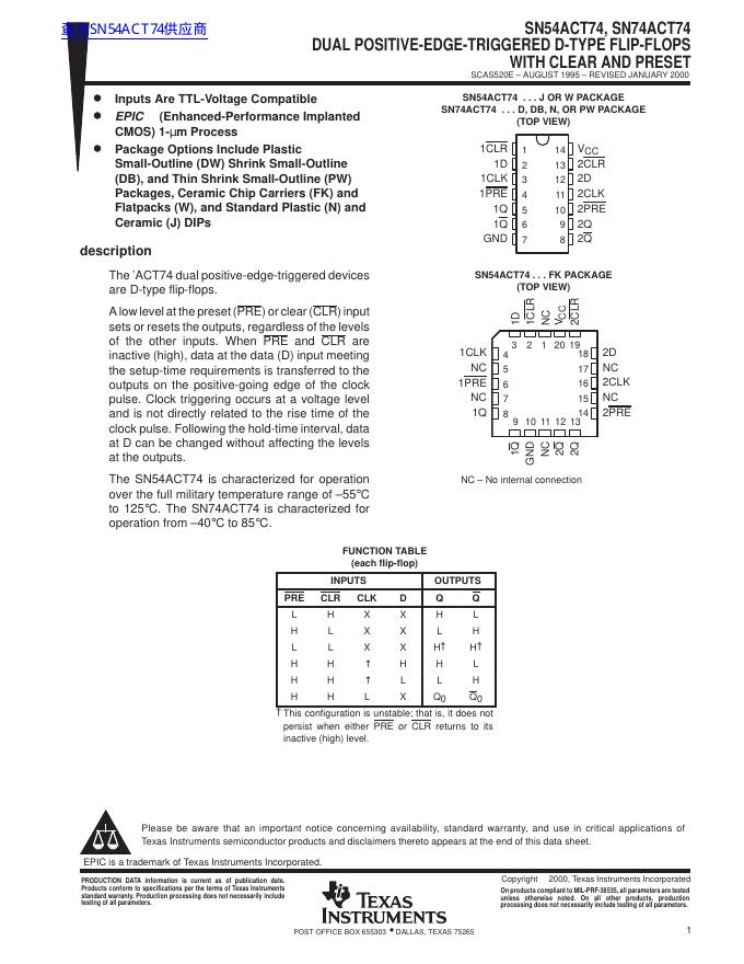 TEXAS INSTRUMENTS 54ACT74, SN74ACT74 DUAL POSITIVE-EDGE-TRIGGERED D-TYPE FLIP-FLOPS WITH CLEAR AND PRESET 数据手册.pdf