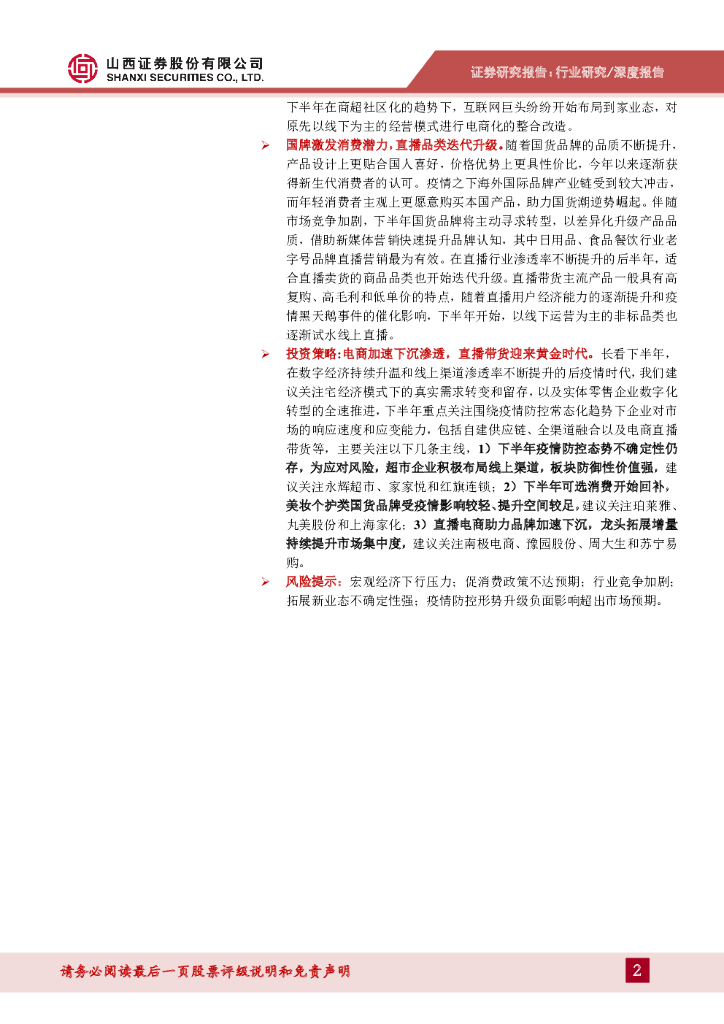 山西证券:零售行业2020年中期投资策略:电商加速下沉渗透,直播迎来黄金时代.pdf