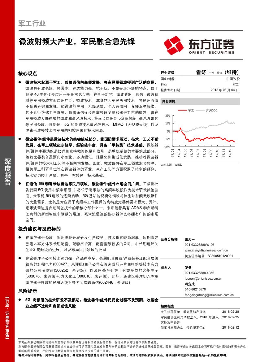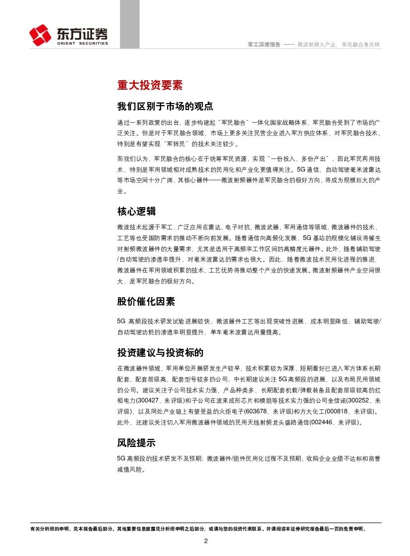 东方证券:军工行业深度报告:微波射频大产业,军民融合急先锋.pdf