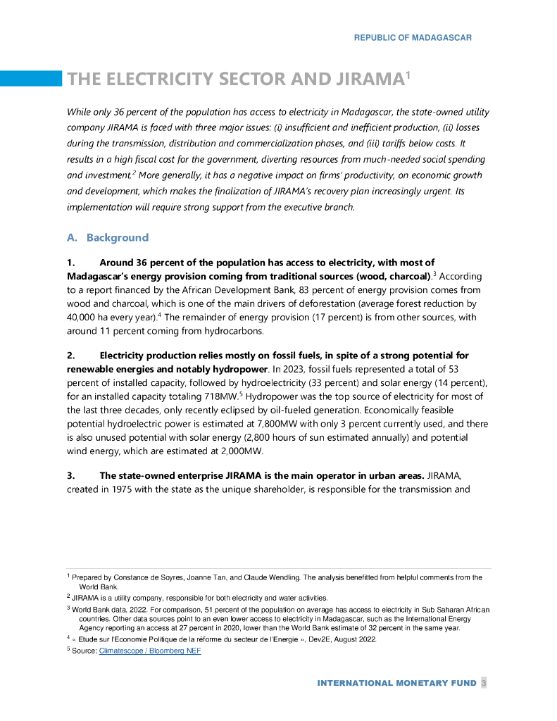 国际货币基金组织:电力部门和Jirama:马达加斯加共和国(英文版).pdf