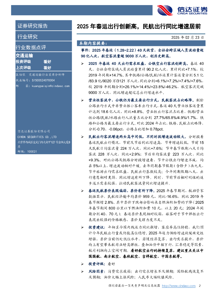 信达证券:交通运输行业数据点评:2025年春运出行创新高,民航出行同比增速居前.pdf