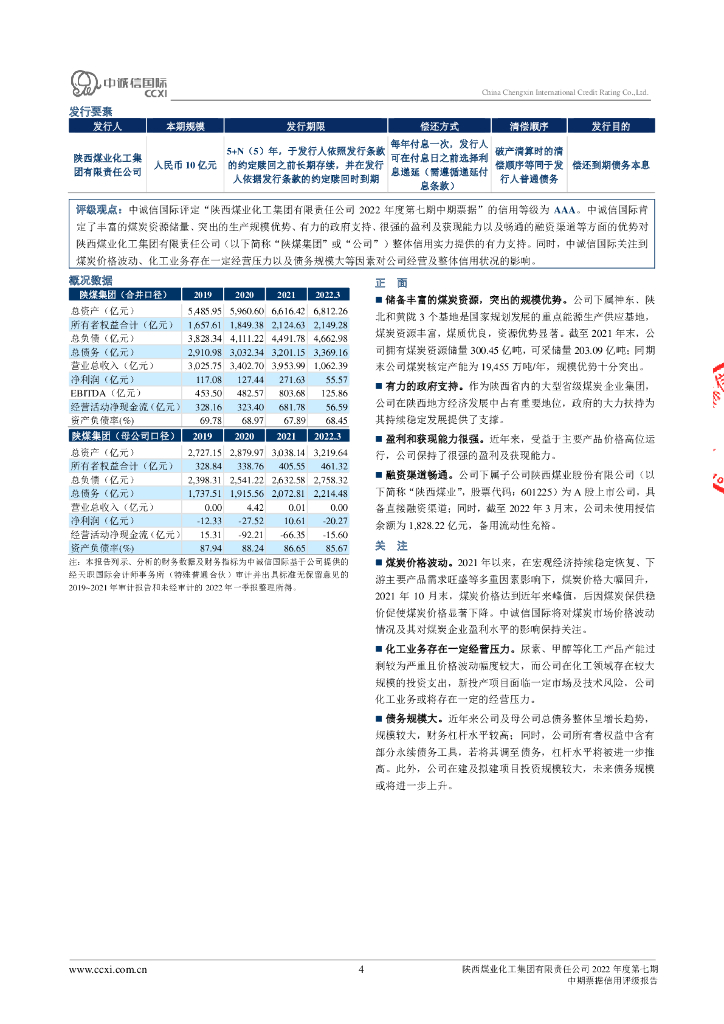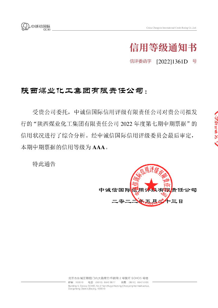 中诚信:陕西煤业化工集团有限责任公司2022年度第七期中期票据信用评级报告.pdf