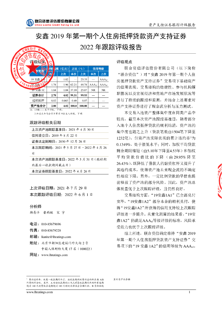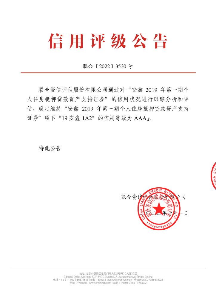 联合资信:安鑫2019年第一期个人住房抵押贷款资产支持证券2022年跟踪评级报告.pdf