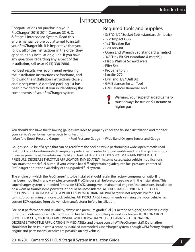 2010-2011 Camaro SS H. O. & Stage II Intercooled System安装手册.pdf