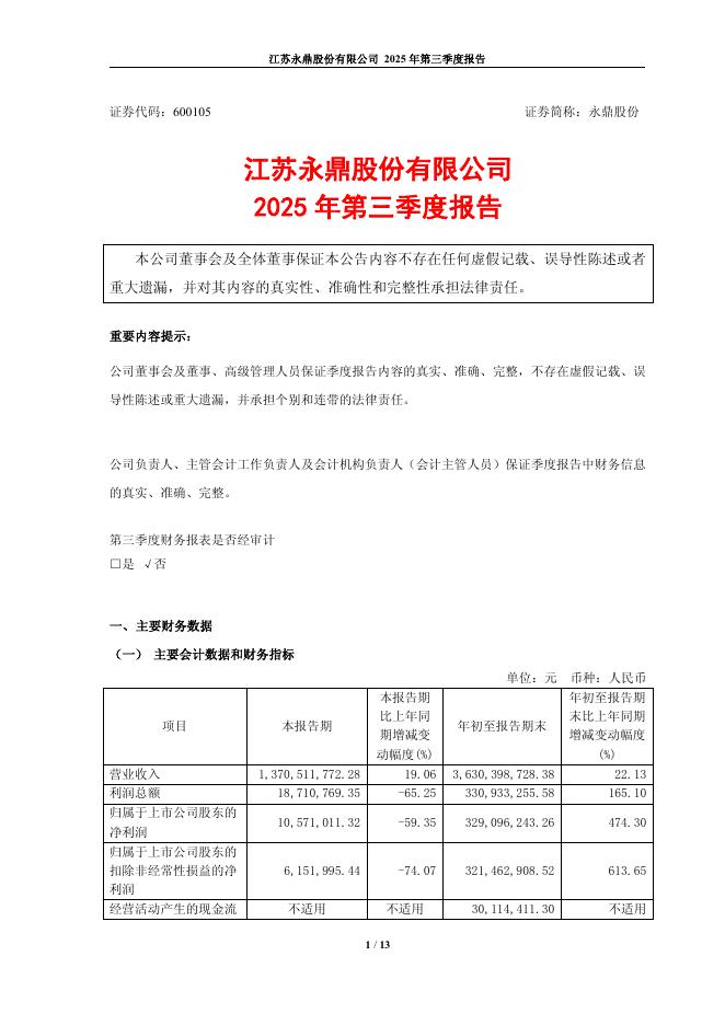 600105-永鼎股份:永鼎股份2025年第三季度报告.pdf