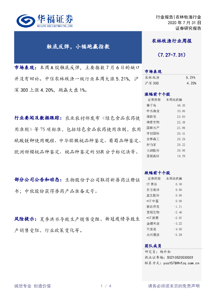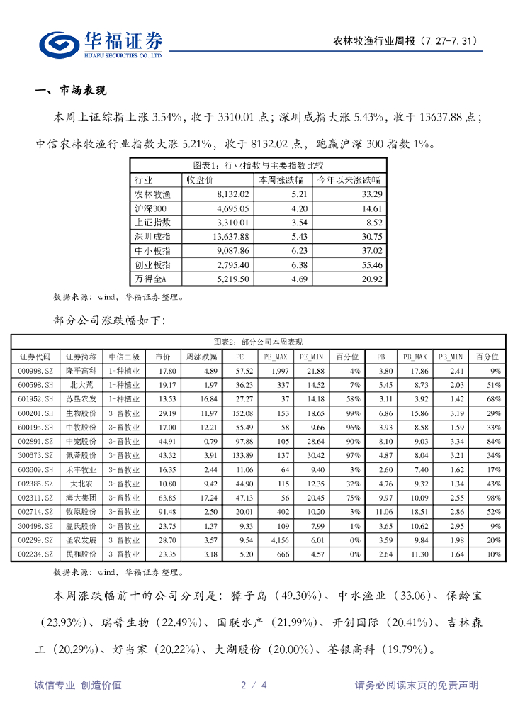 华福证券:农林牧渔行业周报:触底反弹,小幅跑赢指数.pdf
