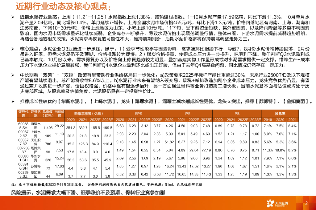 天风证券:水泥行业研究周报:需求提前减弱趋势明朗,价格或继续震荡调整走势.pdf