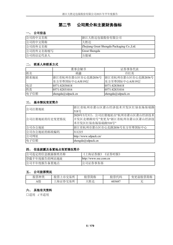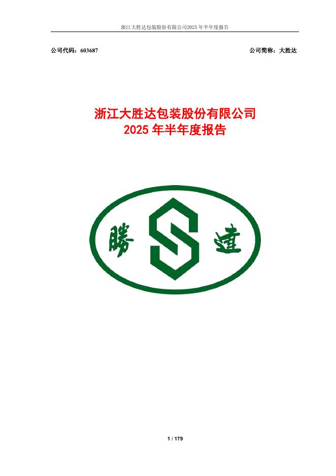 603687-大胜达:浙江大胜达包装股份有限公司2025年半年度报告.pdf