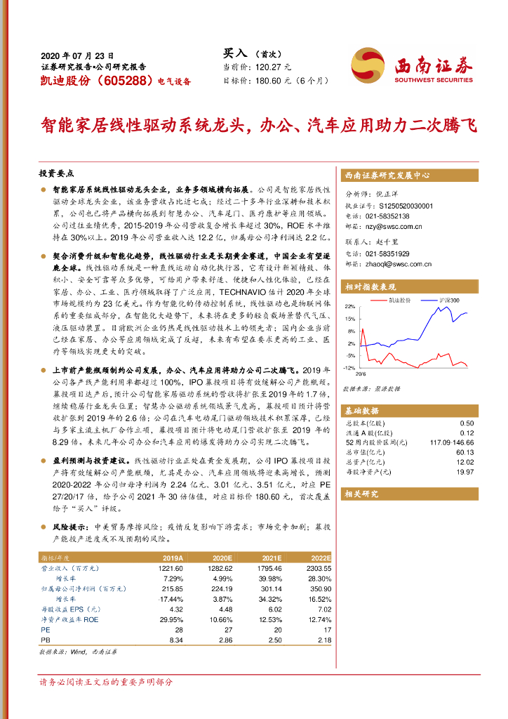 西南证券:凯迪股份(605288)-智能家居线性驱动系统龙头,办公、汽车应用助力二次腾飞.pdf