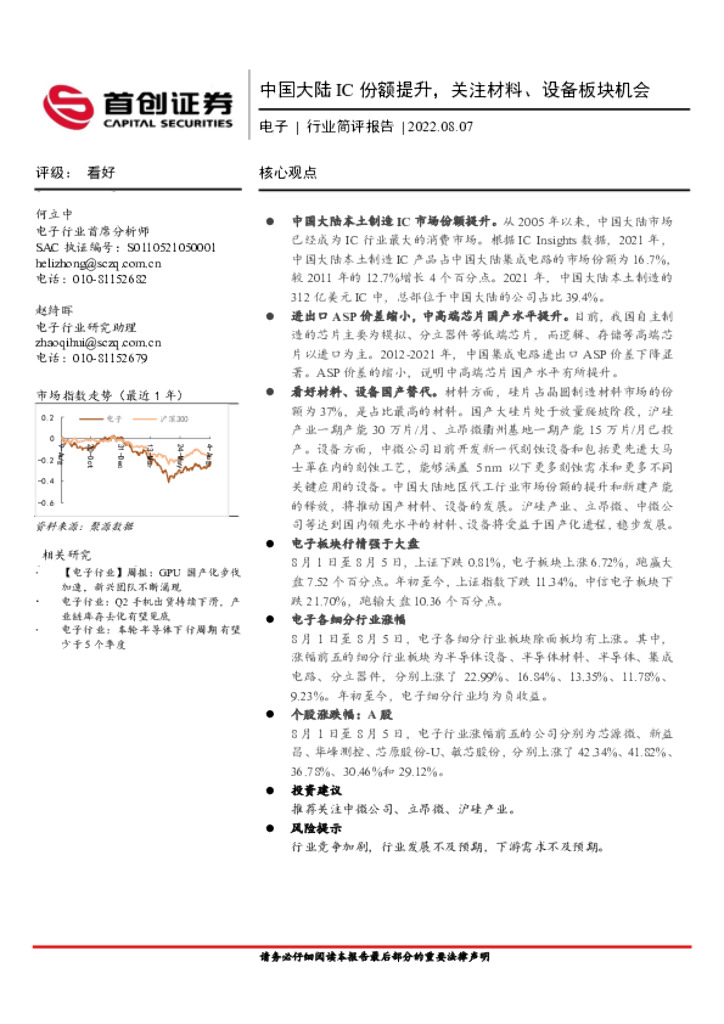 首创证券:电子行业简评报告:中国大陆IC份额提升,关注材料、设备板块机会.pdf