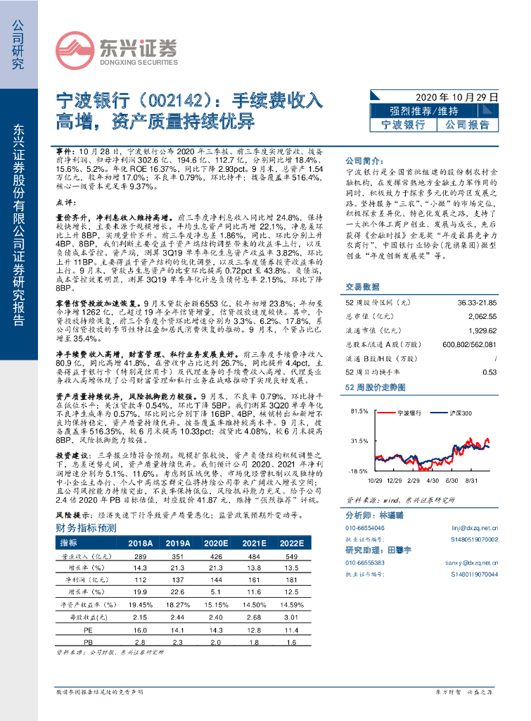 东兴证券:宁波银行(002142)-手续费收入高增,资产质量持续优异.pdf