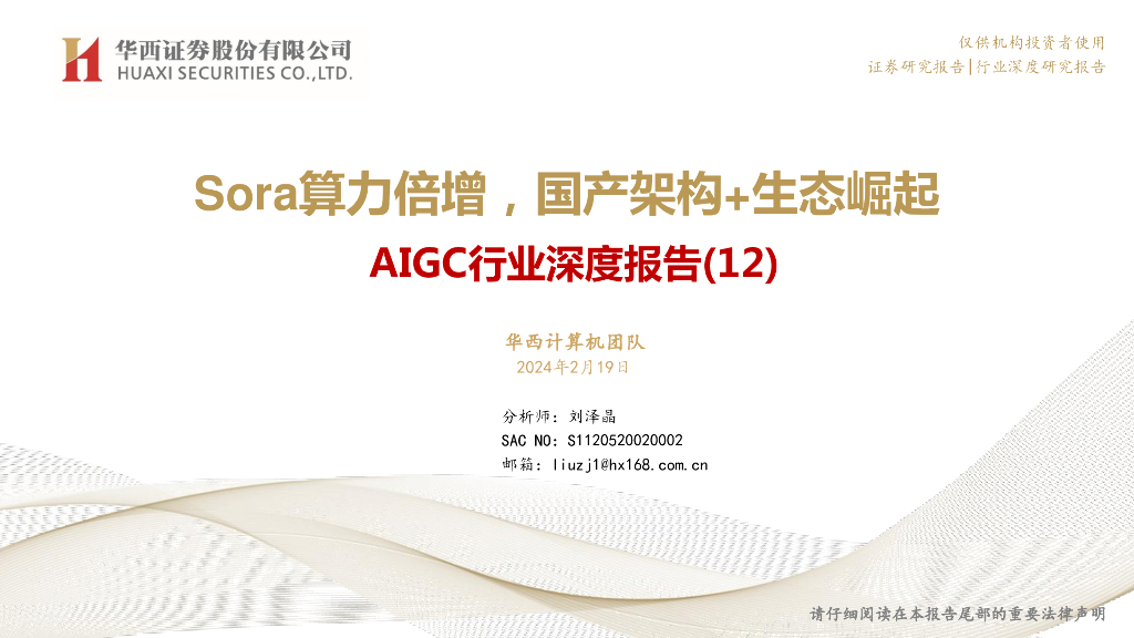 华西证券:AIGC行业深度报告(12):Sora算力倍增,国产架构 生态崛起.pdf