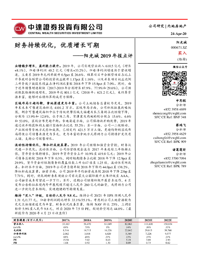 中达证券投资:阳光城2019年报点评:财务持续优化,优质增长可期.pdf