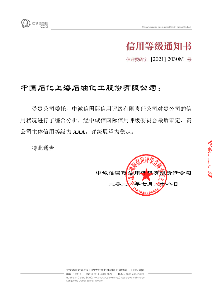 中诚信:2021年度中国石化上海石油化工股份有限公司信用评级报告.pdf