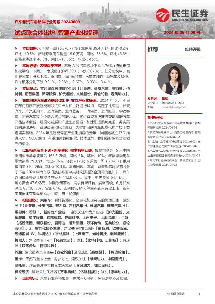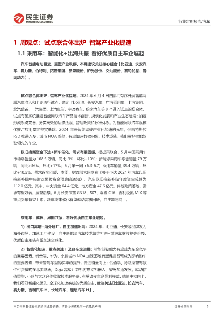 民生证券:汽车和汽车零部件行业周报:试点联合体出炉智驾产业化提速.pdf