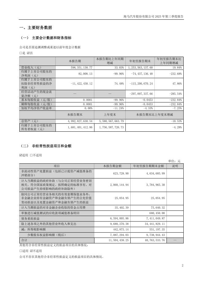 000572-海马汽车:2025年三季度报告.pdf