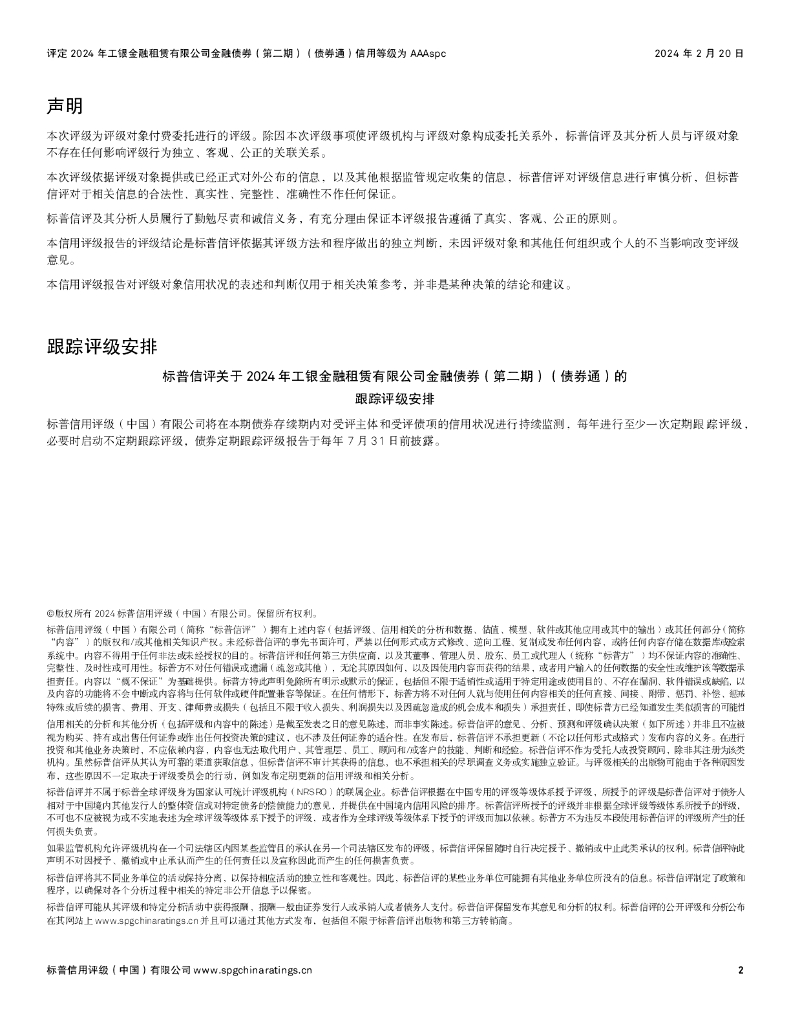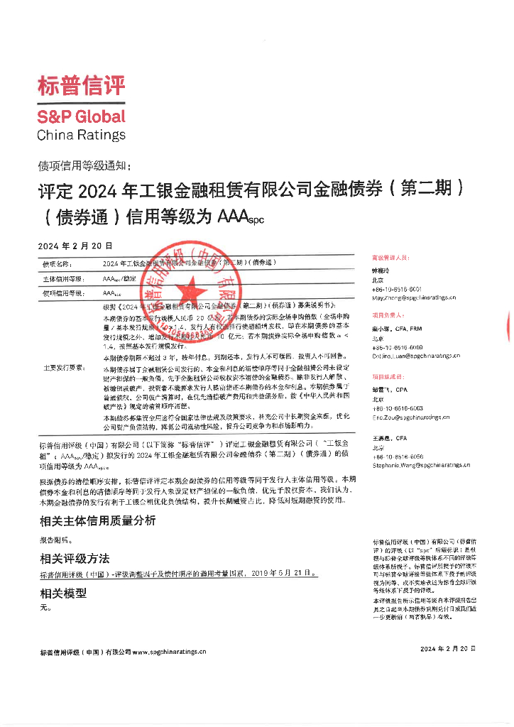 标普信评:2024年工银金融租赁有限公司金融债券(第二期)(债券通)信用评级报告及跟踪评级安排.pdf