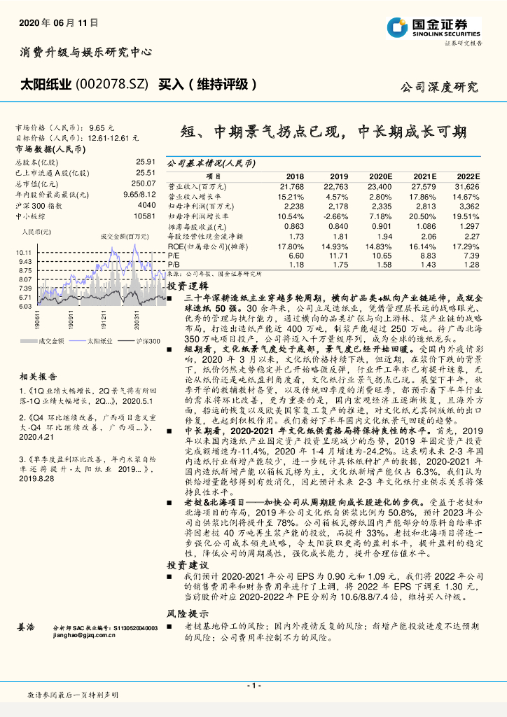 国金证券:太阳纸业(002078)-短、中期景气拐点已现,中长期成长可期.pdf