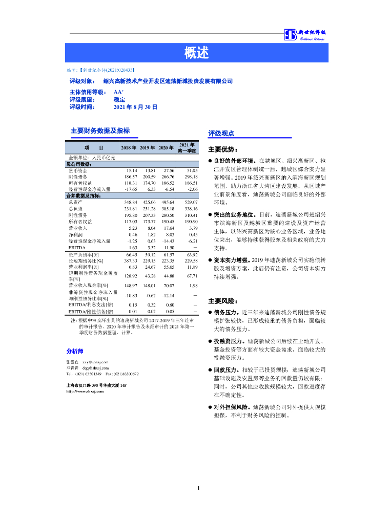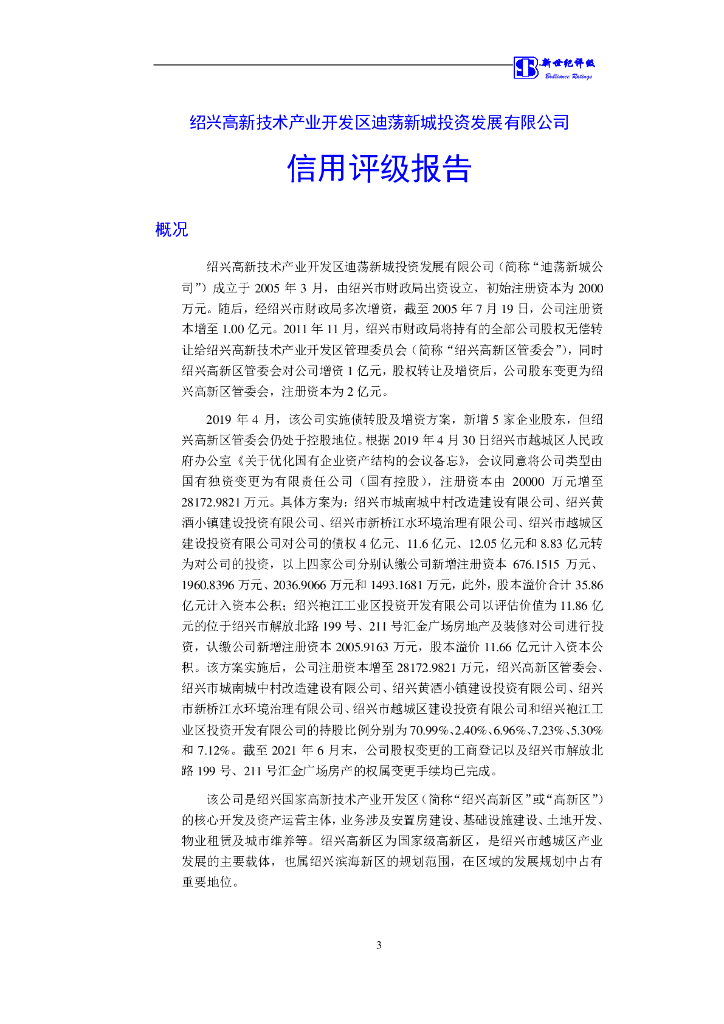 新世纪:绍兴高新技术产业开发区迪荡新城投资发展有限公司2021年度主体信用评级报告.pdf