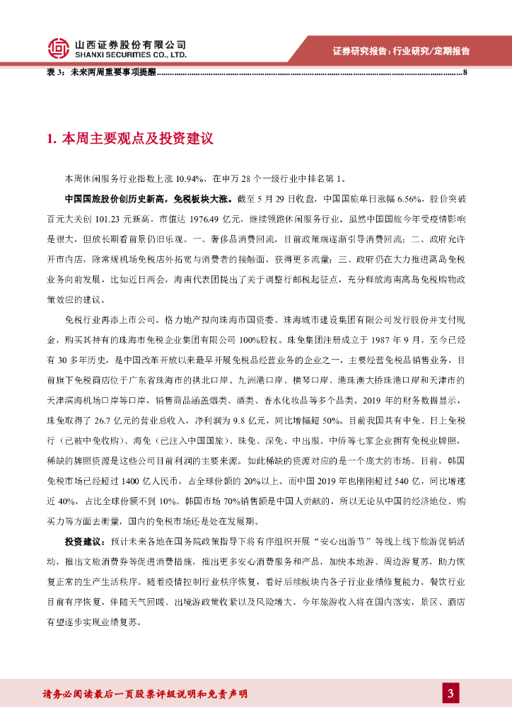 山西证券:社会服务行业周报:中国国旅股价创历史新高,免税板块大涨.pdf