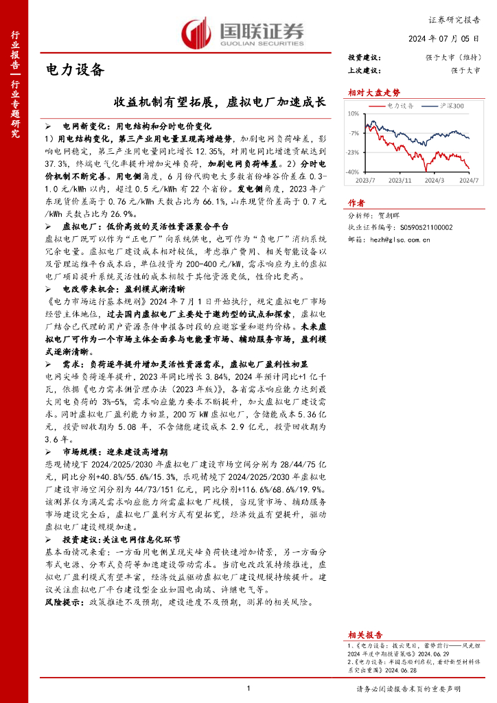 国联证券:电力设备行业专题研究:收益机制有望拓展,虚拟电厂加速成长.pdf
