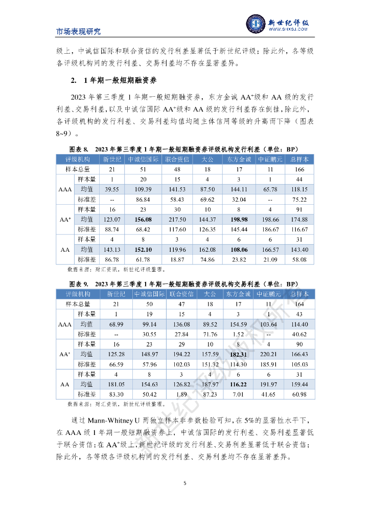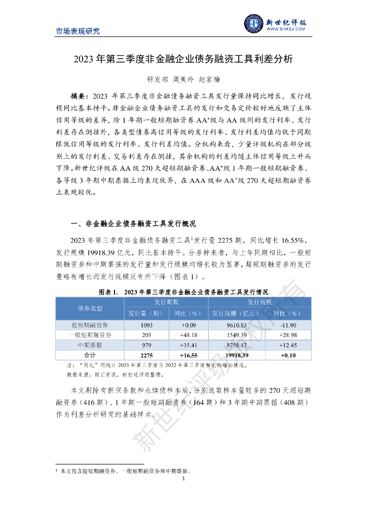 新世纪评级:2023年第三季度非金融企业债务融资工具利差分析报告.pdf